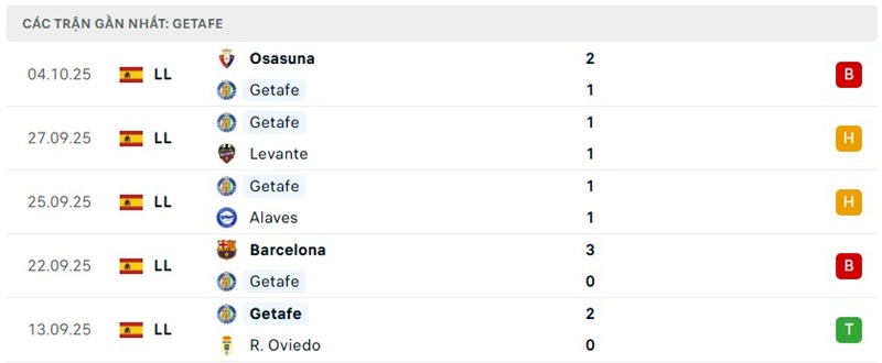 Getafe bước vào trận đấu này sau thất bại 1-2 trên sân Osasuna, một kết quả khiến họ tạm rơi xuống nhóm giữa bảng xếp hạng. Dù Borja Mayoral sớm ghi bàn ở phút 23, nhưng đội bóng của HLV José Bordalás không thể giữ vững lợi thế. Với chỉ 0,82 xG tạo ra trong cả trận, Getafe rõ ràng gặp vấn đề trong khâu tấn công và tạo cơ hội. Tuy nhiên, trước đó họ chỉ thua 1 trong 12 trận gần nhất gặp Osasuna – một minh chứng cho sự lì lợm và tổ chức tốt của đội bóng này. Hiện tại, Getafe đang có 11 điểm sau 7 vòng, tạm đứng thứ 8 và vẫn cho thấy họ có thể gây khó dễ với bất kỳ đối thủ nào, đặc biệt là khi được thi đấu trên sân nhà.