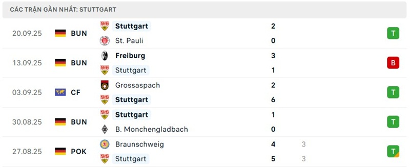 Bên phía đối diện, Stuttgart là đội bóng đã gây ấn tượng tại Bundesliga nhiều mùa giải gần đây. Năm nay, đội khách đã có 2 chiến thắng và 2 trận thua. Với 6 điểm có được, họ hiện đang đứng thứ 8 trên bảng xếp hạng và chỉ kém Koln 1 điểm duy nhất. Tuy vậy, họ vẫn cần tìm thêm cảm hứng cho hàng tấn công khi mới ghi được 5 bàn thắng - con số tệ nhất trong nhóm nửa trên bảng xếp hạng.