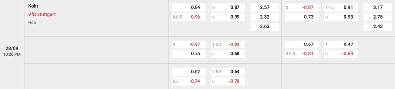 Soi kèo FC Koln vs Stuttgart qua tỷ lệ